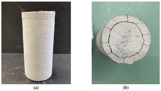 Samples affected by unwanted phenomena (cracking and shrinkage): (a) side view; (b) top view.
