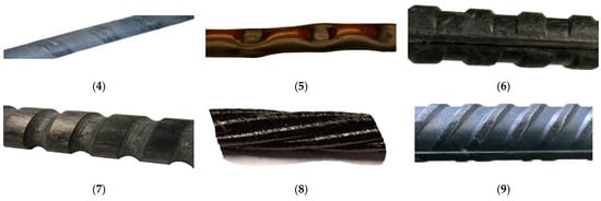 - Frenzel, M.; Baumgartel, E.; Marx, S.; Curbach, M. The Cracking and Tensile-Load-Bearing Behaviour of Concrete Reinforced with Sanded Carbon Grids. Buildings 2023, 13, 2652. [Google Scholar] [CrossRef]