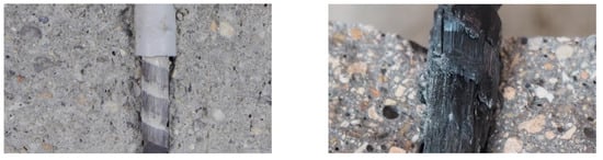 - Hammerl, M.; Stoiber, N.; Haemmerle, J.; Shams, A.; Bischoff, T.; Kromoser, B. Verbundverhalten umwickelter CFK-Stäbe in Beton—Kurzzeituntersuchung der Verbundeigenschaften mittels Pull-out-Tests. Beton Stahlbetonbau 2021, 116, 935–946. [Google Scholar] [CrossRef]
