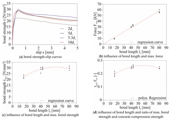- Lindorf, A.; Lemnitzer, L.; Curbach, M. Experimental investigations on bond behaviour of reinforced concrete under transverse tension and repeated loading. Eng. Struct. 2009, 31, 1469–1476. [Google Scholar] [CrossRef]