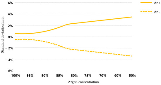 Standard deviation limits of the Sparklike Handheld device, shown according to the window’s argon filling rate [42].
