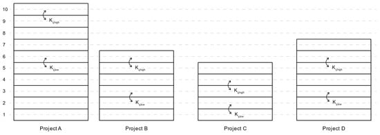 | Project D, int. wall | 5–6 | - (3) | - (3) | - (3) |