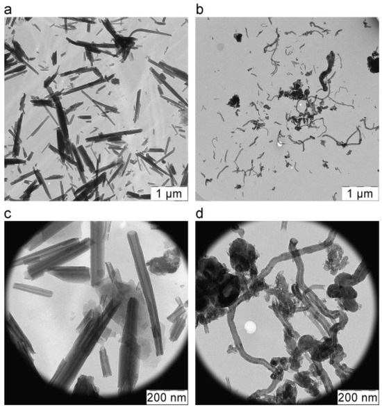 TEM images of halloysite (a,c) and carbon nanotubes (b,d) were used in the experiments [97].