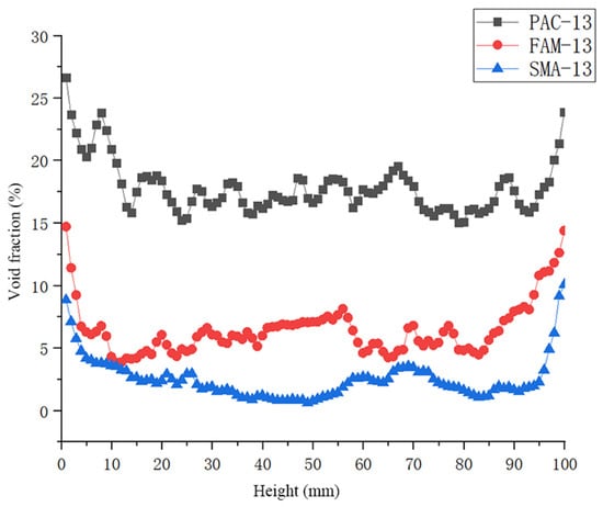 The gradation design of asphalt mixtures for long-slope sections has been studied in the paper. Taking the high-performance asphalt mixture (high functional asphalt mixture) gradation as a starting point, an orthogonal experiment was used to design asphalt mixtures for long-slope roads (referred to as FAM mixtures). The main control indexes are the shear performance and void space ratio of the mixture. Then, the void space characteristics of the mixture were analyzed through CT scanning. Subsequently, the performance of permeable pavement structures in long slope-sections was analyzed to provide references for the promotion of permeable pavements in long slope sections.