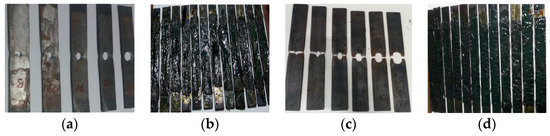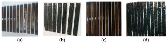 Prepared specimens of strengthened and non-strengthened CSH: (a) non-conditioned, (b) non-conditioned, (c) conditioned, and (d) conditioned.