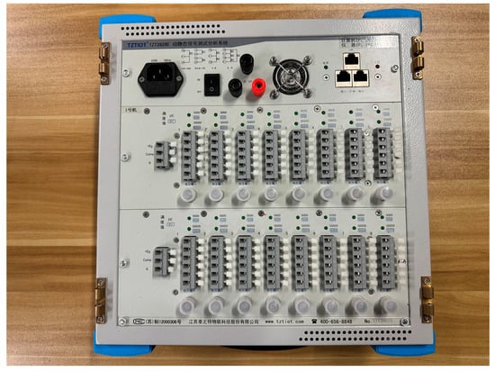 The chosen data acquisition system for testing is the TZT3828E dynamic–static signal test and analysis signal acquisition instrument, along with its accompanying dynamic acquisition analysis software. The dynamic–static signal test and analysis signal acquisition instrument are depicted in