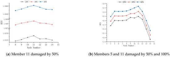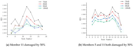 RES represents the relative energy change rate of the wavelet packet, E(t,undam) represents the total energy of undamaged wavelet packets in the structure, and E(t,dam) represents the total energy of wavelet packets in the structure with damage.