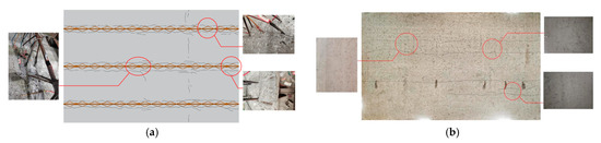 Failure mode and crack distribution of SF60. (a) Front cracks; (b) back cracks.