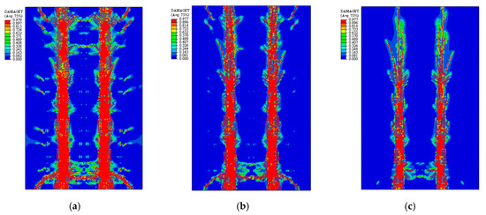 Concrete front damage cloud. (a) N60; (b) N40; (c) SF60.