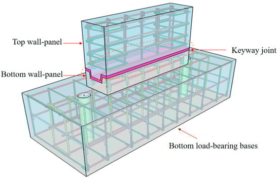 In the realm of building structures, concrete wall panel systems are often considered integral components. The prefabricated construction of concrete wall panel structures plays an important role in improving the efficiency, quality, and sustainability of buildings. However, unlike cast-in-place concrete structures [,,], prefabricated concrete wall panel structures have a significant number of joint seams, which are critical locations for structural integrity. Poor shear performance at the horizontal joints can directly impact the overall reliability of these prefabricated concrete structures []. Currently, horizontal joint connection methods for prefabricated concrete wall panel structures include grouted sleeve connections, mortar anchorage overlaps, and bolt connections [,,]. Research has shown that the interface connections between the horizontal joint layer and both the top and bottom prefabricated concrete components should not be overlooked [,].