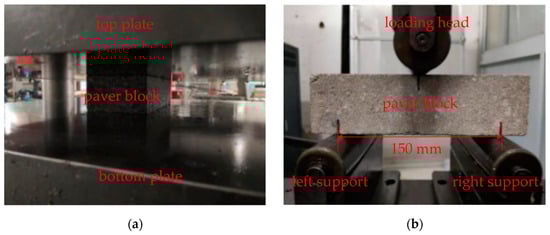 Testing of the paver blocks: (a) compression test; (b) flexural tensile test.