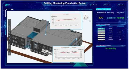 By realizing the BIM model’s high degree of visualization and interaction on the website, the building monitoring system dramatically improves the users’ understanding and control of the building environment. The users can study the details and attributes of the building model in greater depth and conduct model analysis and real-time sensor data monitoring, thus promoting the application and development of building monitoring technology.
