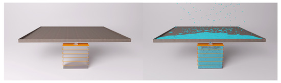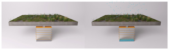 Visualization of the intensive green roof before and after the simulation. The total accumulated amount of runoff water to the stormwater tank is 0.25 m3.