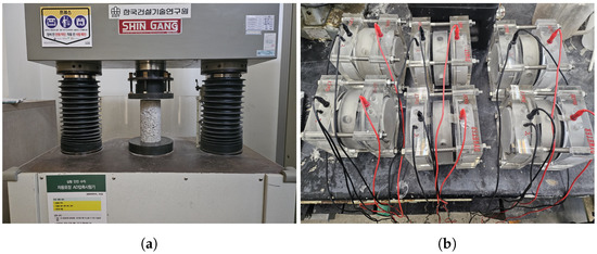 Laboratory tests performed on RCC. (a) Compressive strength test; (b) chloride ion permeation resistance test.