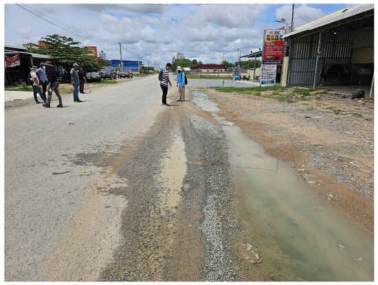 The economic growth of a developing country, such as Cambodia, greatly relies on its national and rural roads that connect the whole country for the exchange of goods. Over the past few decades, Cambodia has made a significant improvement in its transportation system [1,2]. As of 2022, the percentages of pavements covered with Portland cement concrete (PCC), asphalt concrete (AC), or double bituminous surface treatment (DBST) for the national and provincial roads are 84% and 39%, respectively [3]. However, these developmental projects were merely focused on the connectivity of economically strategic areas, such as major cities, in the country. Moreover, national and provincial roads are only a quarter of the whole road network of Cambodia, leaving rural roads, which include the majority of Cambodia’s road network, underdeveloped.