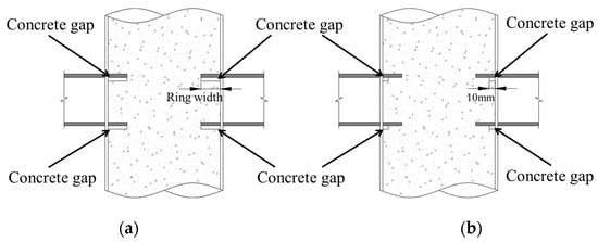 Figure 11). Therefore, the embedded length of the upper ring plate would reduce, resulting in a very limited contact area with the core concrete. Consequently, the load bearing capacity of the upper ring plate was limited.