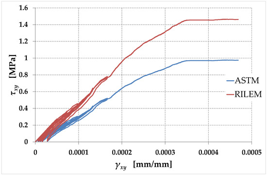 - Since the strengthening system of specimen M1-90 is labile (Section 4.1.1), the value in Table 7 represents the URM Poisson’s ratio. This value is about 52% of the assumption , usually made to identify the Young’s modulus from the shear modulus with Equation (13). This constitutes a well-founded reason for uncertainty regarding the values of Young’s modulus obtained in the literature from the use of Equation (13) with , which leads to an overestimation of Young’s modulus equal to about 11%.