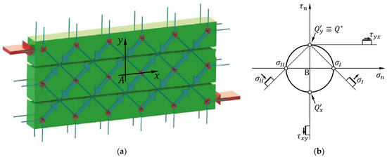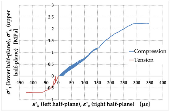 - The stresses given by the principal stresses, and , in the RILEM interpretation of the diagonal compression test (Equation (A24));