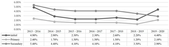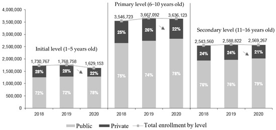 While there has been extensive global debate about inclusive education, it is evident that there is still a long journey ahead for schools to truly embody inclusivity. Therefore, it is essential to promote initiatives that raise awareness about this issue with the purpose of establishing stronger connections between architecture and education, aiming to humanize architecture more effectively. In Peru, especially in rural areas with recent urban growth, many children fail to access early education. There is even a dropout rate at this initial educational level, the initial level being children aged 1–5 years (Figure 1), with figures in recent years showing a worrying increase of 4.40% [8] (Figure 1 and Figure 2).
