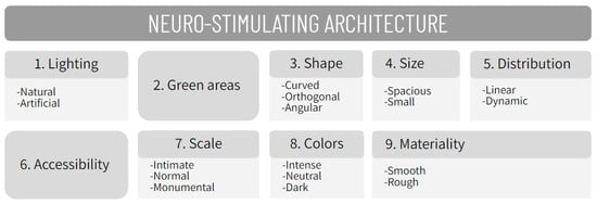 Recent research has contributed knowledge about the relationship and impact of neurostimulating architecture on individuals. For example, the application of neuroscience in neonatal intensive care units (NICU) for premature infants in Florida, USA, in the early 1990s is noteworthy. Neonatal intensive care units were originally designed to meet the functional needs of doctors and nurses but overlooked crucial aspects such as light intensity, temperature, and the filtration of external sounds. The result of that study determined that the final stage of a baby’s development is highly important and is determined via the reception of stimuli. Accordingly, changes were proposed regarding the senses, such as the management of light, sound, and smells. The changes made had a positive effect on the development of the babies [38].