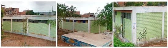 A proposed intervention area of 2115 m2 (Figure 9d) is projected for an educational center covering the early childhood levels of 1–5 years, taking the premise of this proposed built element as an articulator. Therefore, the link it has with other educational centers, accessibility, proximity to public amenities such as sports courts, and the availability of an unused lot have been considered. It is worth noting that currently, there is a poorly conditioned PRONOEI on the lot (Figure 10), and the lot complies with urban planning parameters designated as ‘Other Uses’.