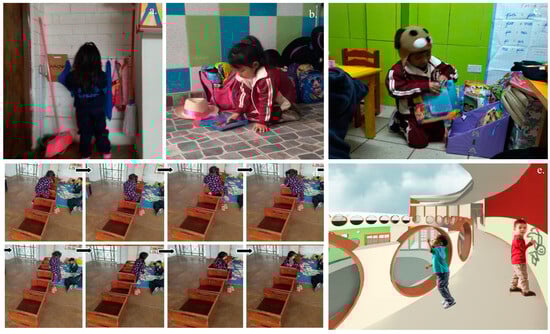 While the scales and accessibility levels of the evaluated educational centers strive to align with required standards, it is important to acknowledge the limitations that exist, particularly for children with specific needs due to the existing typology and the absence of furniture adapted to their scale. Notably, children have exhibited remarkable adaptability, making their own attempts to modify their surroundings for improved functionality. In light of these challenges, the proposal recommends the introduction of multifunctional and evolving furniture, drawing inspiration from the Montessori philosophy’s principles. This innovative furniture is specifically designed to promote children’s independence, enhance their concentration, and support the development of practical skills, thereby fostering autonomous access and interaction with the environment. The incorporation of precise measurements for common furniture, informed by extensive fieldwork, further bolsters the viability of this proposal as a case study for the successful implementation of neurostimulating architectural strategies.