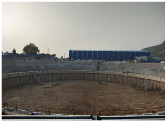 A shallow buried anchorage foundation was proposed in the Wujiagang Yangtze river bridge of Yichang city, where the underlying stratum is soil–rock composite ground. The diameter and embedded depth of foundation is 85 m and 15 m. As shown in Figure 8, the dissimilar micro-pile composite foundation is adopted to adjust the vertical and horizontal stiffness of the bearing stratum. The micro-piles are arranged in the shape of quincunx. And the diameter, pile space and length of the loaded pile are 0.3 m, 2.0 m and 7.0 m, respectively, and the elastic modulus of the pile and bearing stratum are supposed as 50 MPa and 30 GPa; the Poisson ratio is set as 0.25 for the pile and bearing stratum.