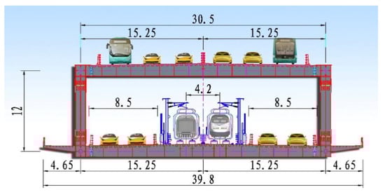 The total overhead weight of the bridge is approximately 54,953 tons. The main truss of the steel beam of the Weihe Bridge has a center distance of 30.5 m, a truss height of 12 m and follows a triangular truss pattern with a standard pitch of 12 m. To accommodate the span arrangement, the side span has been adjusted to a length of 13.5 m. The upper and lower decks of the bridge consist of orthotropic steel plates in a plate truss composite structure. The bridge deck is connected to the top plate of the chord, enabling joint stress between the plates and trusses. The main structure adopts Q370qE, Q420qE, and Q500qE steel plates, with a maximum plate thickness of 64 mm for the main truss member and 70 mm for the node plate. The standard member is 12 m long, about 3.5 m high (including the height of the node plate structure), and is 2.19 m wide. The maximum weight of a member is 75.9 t, while the maximum weight at the junction of the stiffening chord and the top chord is 140.9 t.