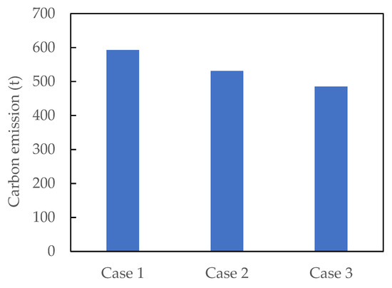 The carbon emission factor of standard coal was 2.493 kg/kg, and the operational carbon emissions of the building during its entire life cycle were calculated. Figure 9 shows the life cycle carbon emissions of the building in each case. Compared to Case 1, the life cycle carbon emissions of Case 2 and Case 3 were reduced by 9.7% and 17.7%, respectively.