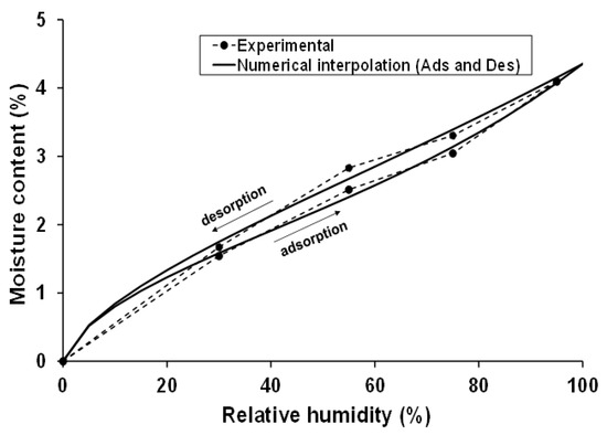 The construction of the two-branch sorption isotherms was based on the thermodynamic approach developed by Merakeb [43] [Equation (19)].