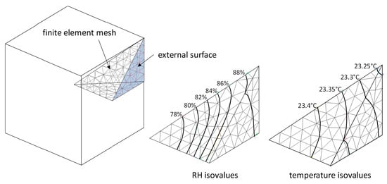 Heat and mass transfer are coupled through two balance equations. Generally, a 3D form (for heat and moisture transfer) is chosen (Equations (12) and (13) respectively).