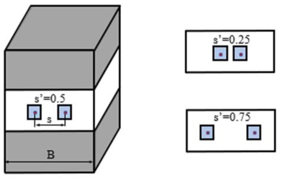 where s is the distance (in meters) between the centers of the two openings, and B is the building’s width (in meters), using 0.25, 0.5, and 0.75 as examples.