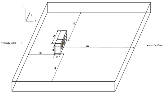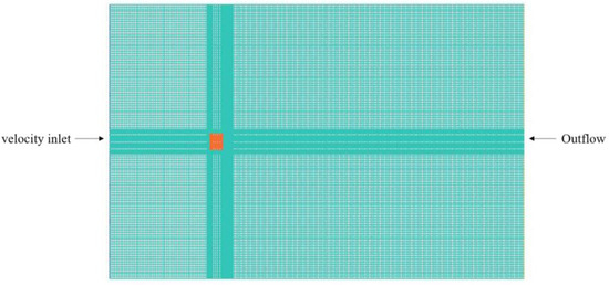 The velocity inlet boundary condition was adopted to the inlet, with Uy values of 1 m/s, 2 m/s, 3 m/s, 4 m/s, 5 m/s, and the velocity in the other two directions was 0; the turbulence intensity at the inlet was set to 10%, and the turbulence integration length was set to 0.58 m [19]. The outlet was set as outflow; the sides, the top and the bottom were set as symmetry; the opening was set as the interior, and all the other wall surfaces were set as no-slip.