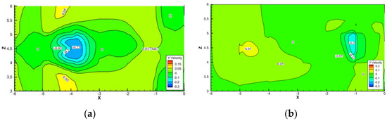 Airflow velocity distribution in the plane with Z = 4.5 m. (a) Y = 3 m. (b) Y = 9 m.