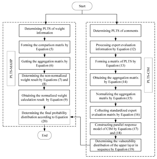 Vulnerability assessment is a typical multi-criteria decision making (MCDM) problem [51]. Referring to the general research paradigm of MCDM, the flow chart of the model proposed in this paper is shown in Figure 2.