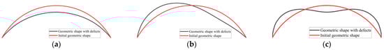 Geometric imperfections of the first three orders with random distribution in hingeless circular arches: (a) First-order defect distribution; (b) Second-order defect distribution; (c) Third-order defect distribution.