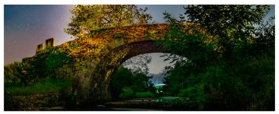 - Bouzas, O.; Conde, B.; Matos, J.C.; Solla, M.; Cabaleiro, M. Reliability-based structural assessment of historical masonry arch bridges: The case study of Cernadela bridge. Case Stud. Constr. Mater. 2023, 18, e02003. [Google Scholar] [CrossRef]
