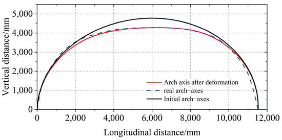Based on Table 4, it can be observed that the best-fitting result is achieved using an elliptical arc. Therefore, in this study, the arch ring is approximated using an elliptical arc. Through analysis, the equation of the ellipse can be obtained as follows: