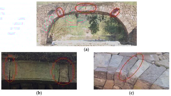 Stone masonry arch bridges have a global presence, as evidenced by numerous studies [1,2,3]. In the southern and southwestern mountainous regions of China, where stone resources are abundant but transportation is challenging, the proportion of stone masonry arch bridges exceeds 90%. Most of these bridges were constructed based on the practical knowledge and expertise of local craftsmen. However, as these bridges age, various issues such as deformation, cracking, and damage have become apparent [4]. The ability of these bridges to withstand current transportation demands is a significant concern. To ensure the preservation of stone masonry arch bridges, it is imperative to propose a method that can effectively account for their initial defects, as well as the impacts of existing damage and deformation. Such an approach would enable an accurate assessment of their load-bearing performance and provide a solid theoretical foundation for their reinforcement and maintenance.