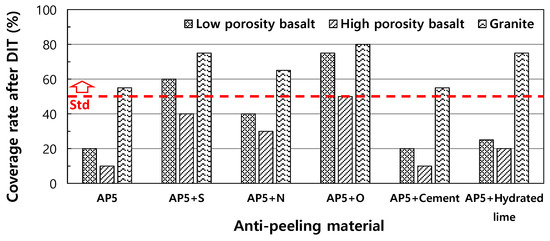 - To improve the lack of moisture resistance of Jeju Island basalt aggregate, an anti-stripping material was applied and evaluated. To select an appropriate anti-stripping material, DIT was performed using three types of aggregates (low-porosity basalt, high-porosity basalt, and granite) and five types of anti-stripping materials (hydrated lime, cement, and liquid anti-stripping agents S, N, and O products). As a result of the test, it was found that when liquid anti-stripping agent O was added, it showed the best effect and satisfied the quality standards. Additionally, a tensile strength ratio test was performed to determine whether the moisture resistance performance of the asphalt mixture was improved. A test was conducted on two types of aggregates (low-porous basalt and high-porosity basalt) and two types of mixes (for surface layer and intermediate layer) with the addition of liquid anti-stripping agent O. As a result of the test, the tensile strength ratio of all mixtures increased, and in particular, the tensile strength ratio of basalt asphalt for intermediate layers, which did not meet the quality standards before adding anti-stripping agent, increased significantly to a level that satisfied the quality standards. Therefore, it is concluded that in order to apply Jeju Island basalt to asphalt pavement, an appropriate anti-stripping material must be applied.