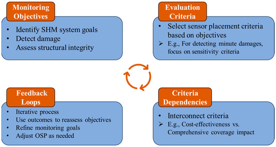 An often overlooked yet simple aspect is the actual cost involved in OSP. The cost is influenced by the location of the sensors. For instance, in the scenario depicted in Figure 2, where all properties require SHM, the cost at location B could be higher than at locations A and C due to its position in the middle of a water body. Researchers sometimes may need to consider such finical effects in the overall optimization progress [96].