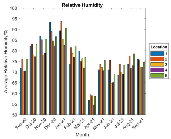 Comparison of the relative humidity recorded at each location.