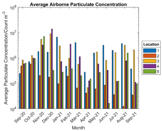The temperatures measured through the year reflect those which would be expected in a UK coastal location. Both the recorded ambient temperature and the panel temperatures, Figure 13, were generally fairly similar across all the locations with variations limited to a maximum of 3–4 °C. Location 1 (south middle) experienced the highest temperature fluctuations due to it being on the south face and with greater sun exposure. This region also experienced some of the lower temperatures in the winter months. The panel temperatures follow a similar trend to the ambient temperature but are on average approximately 3 °C lower. This is attributed to radiative heat losses experienced during the measurement process of the IR thermopile sensor.