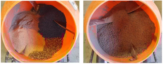 The size of the particles of the used CR ranged from 3 mm to 6 mm, and the bulk density was 302.5 kg/m3. Figure 2a shows a sample of the CR aggregates used. The source of the CR aggregate was recycled tires and was provided by Cobalt Holdings, LLC. These tires were manufactured from natural and synthetic rubber along with many chemical additives, including zinc, sulfur, black carbon, and oils that contain polycyclic aromatic hydrocarbons (Cobalt Holdings, LLC.). The sieve analysis of the rubber is presented in Figure 1.