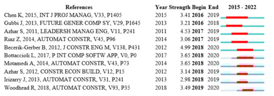 4.2. Change of Research Topics in the BIM-IoT Integration Field in the Timeline