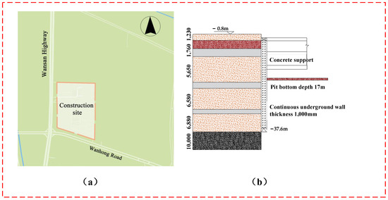 Engineering and geology overview: (a) construction site map; (b) stratigraphic map.