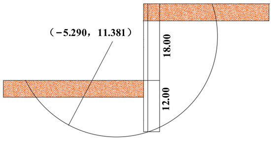 To avoid damage to the foundation pit from overall sliding between the support for the foundation pit and the surrounding soil, it is important to examine the foundation pit’s overall stability. The Sweden slice approach is used, and Figure 6 displays the check calculation diagram. The width of the dirt strip in this estimate is 0.40 m, which can satisfy the project’s requirements. The circle’s calculated center is located at (5.290, 11.381), and the arc’s radius is 24.213 m. The final number is 1.204 for the overall stability safety factor.