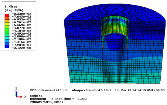 The Mohr–Coulomb model is one that describes how soil is made. A foundation hole is a symmetrical form, and the soil layer around it is simplified in this work to be a homogeneous soil layer. Therefore, a half cylinder is used to reduce the calculation cost.