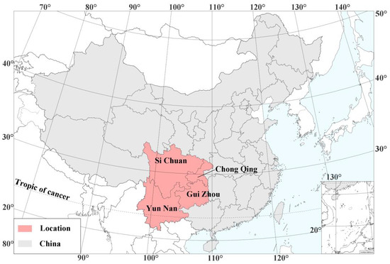 Four provinces and municipalities in southwest China (Chongqing, Sichuan, Guizhou, and Yunnan) were selected for the study for the following reasons (Figure 1):