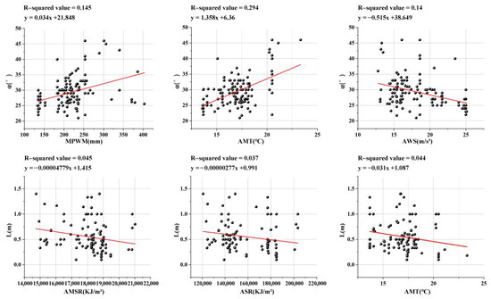 After correlation analysis, we attempted to fit highly-correlative climatic variables and the corresponding building elements to a linear model to identify clear trends. The results are shown in Figure 4.
